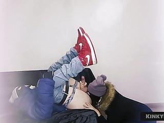Sie lässt den Neger seinen Balast in ihrem Arsch und dann auf ihre Titten abladen