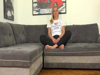 Älter und sexy – Eine erfahrene Blondine in Strumpfhose spielt mit ihren Reizen